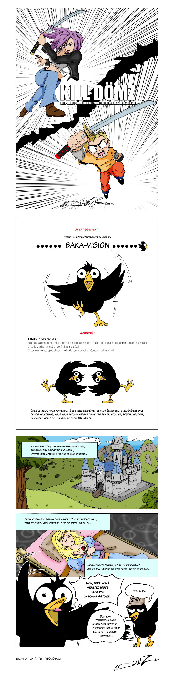 Voilà on y va ! C'est parti ! Bon, vous allez me dire un truc du genre : "bah dis donc, c'est léger". Alors oui, c'est vrai, mais que voulez-vous, les conneries arrivent souvent au dernier moment. Malgré que ces pages soient faites depuis quelque temps déjà, cette intro n'était pas prévue à la base... Bon, quoi qu'il en soit, j'espère ne pas trop vous faire attendre pour la suite. Et en attendant soyez sages !